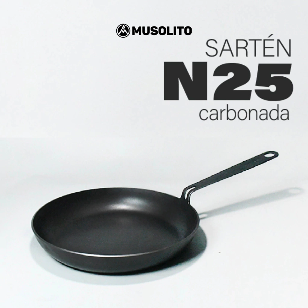 La sartén de hierro N25 no presenta soldaduras, remaches ni aditivos químicos. Su diseño elegante y robusto logra el equilibrio perfecto entre una sartén versátil, duradera y resistente.